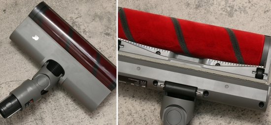 在看一下配件,日常清洁用到最多的就是电动地刷,主要用于清洁地板、地砖、短毛地毯等,地刷与延长杆连接之间设计灵活,手持下操作更加便捷。