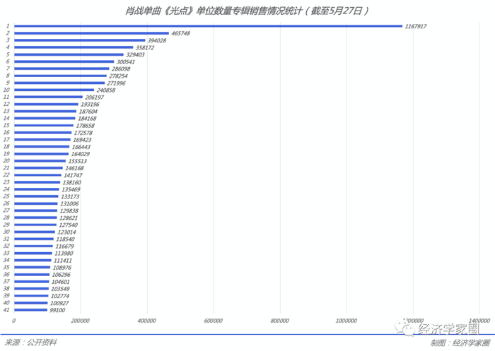 以《光点》的销量数据为例,有人分析指出,在单曲释放后两周内,在qq音乐平台上有接近120w人购买了光点。其中,有6w人购买了至少104次光点,有10w人购买了超过35次光点,有20w人购买了超过11次光点。而榜一甚至夸张到购买30w次光点。
