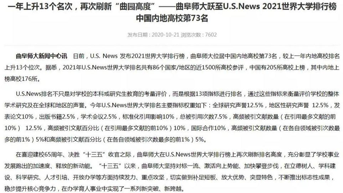 在该机构排名中能“脱颖而出”,而且在学校官网中宣传自己取得的“排名成就”,说明曲阜师范大学还是很努力地在“追求上进”。某种程度上,也是“合理”利用了规则。林林总总的大学排行榜,能反应学校的真实水平吗?
