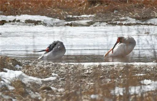 有时身披白色型的冬羽,有时又变成灰黑色的繁殖羽,朱鹮的这两套造型曾经给科学家定种造成过不小的麻烦。