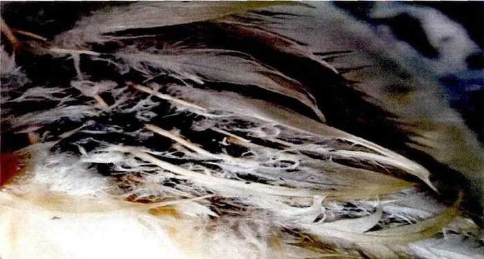 现在我们知道,朱鹮的脖颈处皮肤上有一环状区域,不同于身上其它部位的肉色皮肤,这块区域的皮肤常年保持黑色,而这里也就是求偶期分泌黑色物质的部位。陕西师范大学的科研人员通过对黑色物质及脖颈处组织的采样研究发现,不同于之前认为的油脂状物质或单纯的黑色素,黑色物质实际上是一种粉末状混合物。科研人员从黑色物质中检测出多达117种化学成分,且其中多数组分难溶于水。但黑色混合物中的各组分比例以及具体结构还有待进一步研究。