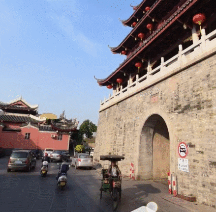 原则上,牌坊街是不允许超过两个轮子的车通行的。图片中的电动三轮车位置是在牌坊街中段,连接开元路的合法交通段落。