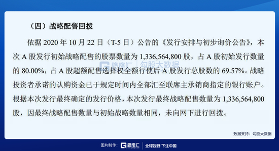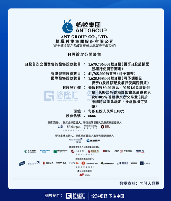 根据公告显示,蚂蚁将在A股发行不超过16.7亿股的新股,其中本次A股发行初始战略配售的股票数量13.4亿股,占A股(“绿鞋”前)初始发行量80%。似乎有意减轻二级市场压力,同时也在最大程度上利好打新投资者。