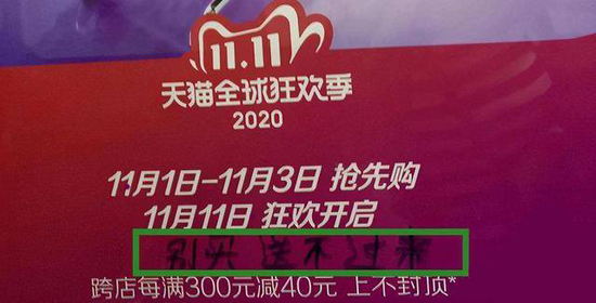 (某栋居民楼电梯中,快递小哥在双十一促销海报上手写:“别买送不过来”)