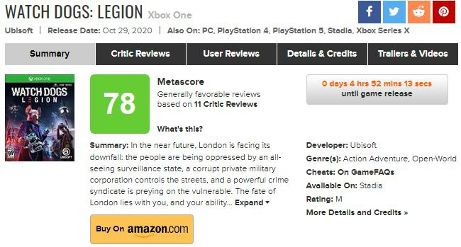 育碧系列新作《看门狗:军团》媒体评分现已正式解禁,目前媒体评分汇总站Metacritic上,这款作品的媒体均分暂时为78分(结合11家专业媒体评分),而IGN则给这款作品打出了8分的成绩。