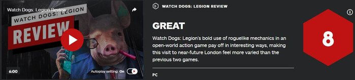IGN 评分 8/10:《看门狗:军团》在一款开放世界动作游戏中大胆采用了Roguelike机制,以一种有趣的方式获得了回报,使得这场近未来伦敦之旅比前两款游戏更加丰富多彩。