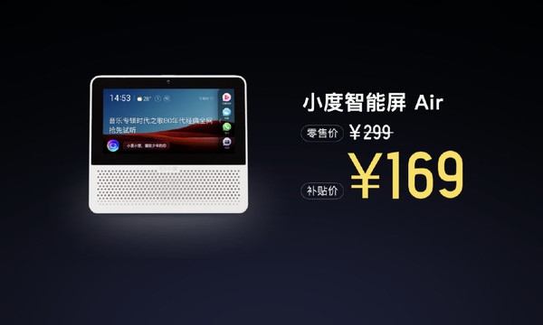 原标题:带屏智能音箱价格触底?小度智能屏Air直降至169元