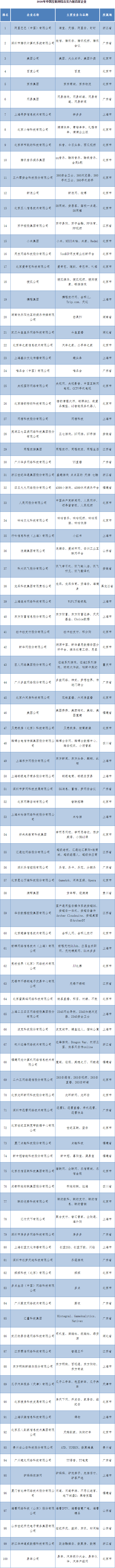 2020年中国互联网综合实力前百家企业