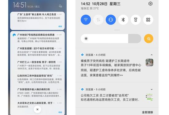 这些浏览器的推送频次也非常高。只要你不关推送,哪怕是手机没开浏览器,静置个小半天,通知栏上也会堆积着各种新闻,可并不是那种非看不可的家国大事。