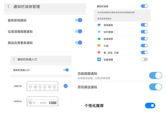 手机自带的浏览器并非无药可救,至少从我们体验的情况来看,大部分自带浏览器都内置了一个开关,它可能会叫‘个性化推荐’、‘资讯通知’,也可能叫‘猜你喜欢’、‘通知栏消息’,反正最终目的,都是为了给推送制造机会。