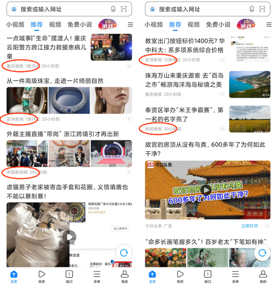 与此同时,部分浏览器也对信息流内容进行了替换,只选用具有新闻采编权的媒体消息源,减少了花边新闻、明星八卦和自媒体消息的出现频次,但信息流中仍然保留了广告。