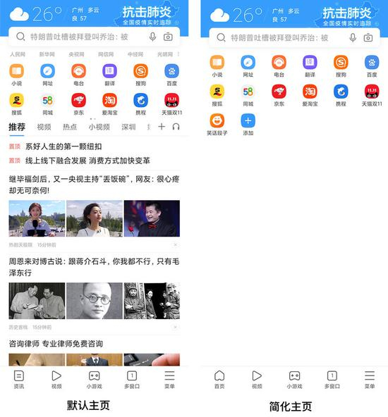▲ 搜狗、QQ 浏览器都可以关闭首屏信息流,但也仅限于此了