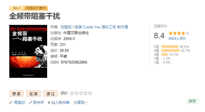 豆瓣8.4分 刘慈欣又一科幻小说《全频带阻塞干扰》将改编电影