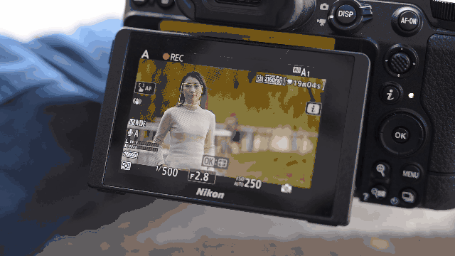 尼康Z6 II和Z7 II相比自家单反,取消了屏幕左侧的按键,更多的按键集中在屏幕的右侧,比如常用的“i”按键、放大/缩小、MENU、连拍等都单独做成了实体按键,此外还加入了一个五维导航按键以及摇杆,操控起来非常方便。而在屏幕上,仍然是一块约170°可视角度,100%画面覆盖率以及210万像素的可翻折液晶屏。
