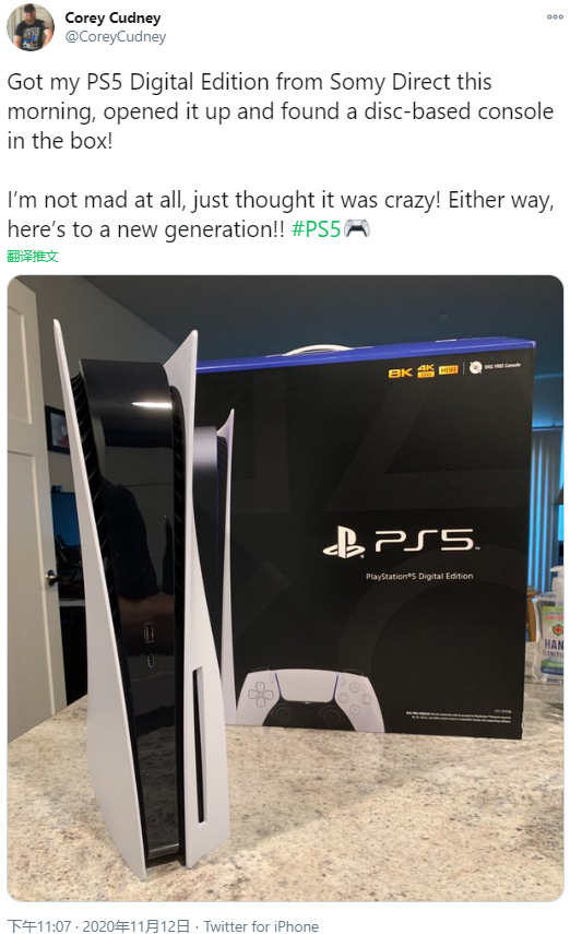 这种游戏机“错版”的情况,并非Corey Cudney一人独享。在Corey Cudney发布消息之后,也有其他预定了数字版PS5玩家表示收到的确是光驱版,看来索尼要因此多赔个几百块了。