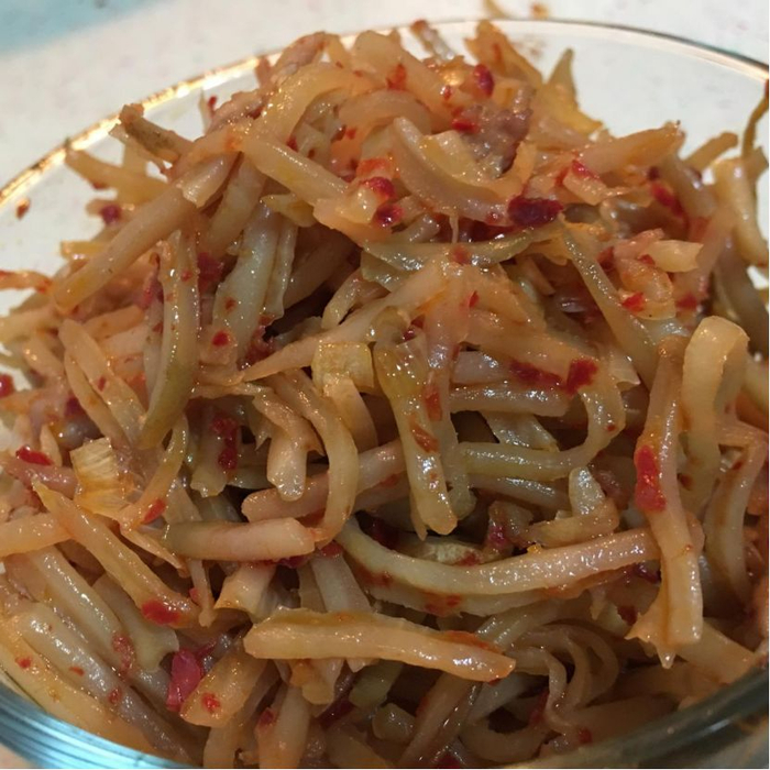 新鲜的芥菜疙瘩辣味冲,腌制后辣味减淡更加柔和。切成细丝,拌上新炸的辣椒油,是早点的好搭档,就着滑嫩的豆腐脑、酥脆的馃子或者柔软的大馒头一起吃,给你一个元气满满的早晨。