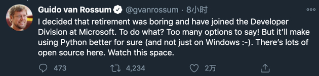 刚刚,Python之父Guido Van Rossum宣布加入微软