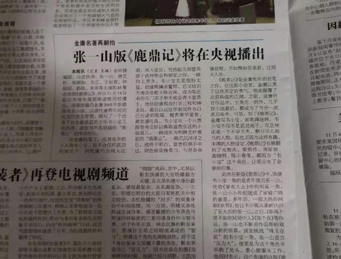 新《鹿鼎记》央视开播:张一山演韦小宝