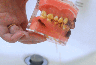 我们将果酱均匀的涂抹于牙齿模型上,给大家展示一下水牙线的实际清洁效果。