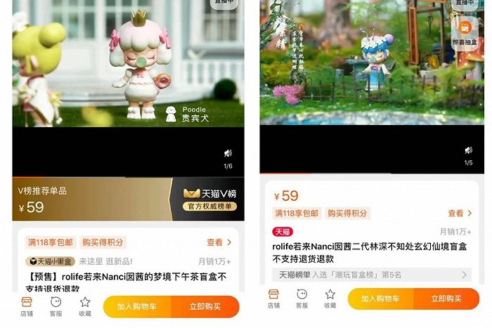 从若态旗下IP开发产品的销售情况看,Nanci囡茜相关产品的销售最为火爆。比如,在rolife若来旗舰店一家店铺,售价59元的Nanci囡茜的梦境下午茶盲盒,不包邮,16天内累计卖出了1万单。而Nanci囡茜二代林森不知处玄幻仙境盲盒等的16天销量,也在1万单以上。Yoola悠拉、Suri苏蕊、Chocat巧克猫的单个系列盲盒在16天的销量,多在1000单以上。