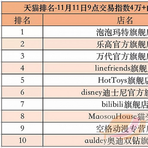 泡泡玛特继续坐稳天猫玩具大类Top1的位置,并以1.42亿元的销量成为天猫大玩具行业史上第一个进入双11亿元俱乐部的品牌旗舰店。