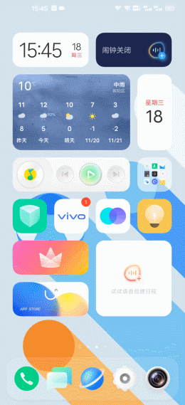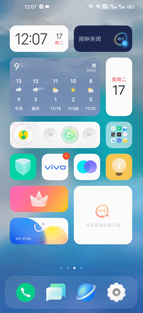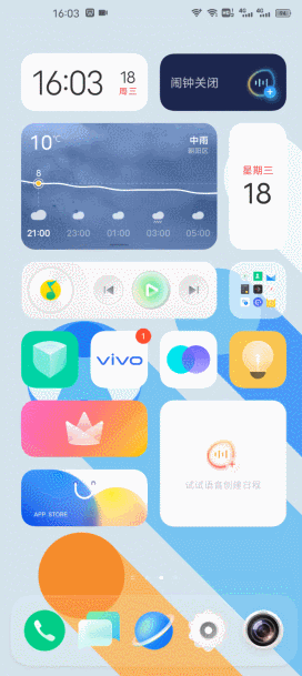 vivo设置这些“原子组件”的目的则是让操作和交互更便捷和简单,它将传统APP和散落各处的功能整合了起来,使用户无需进入应用即可实现操作: