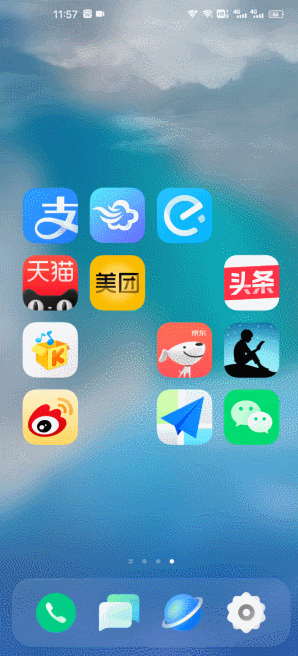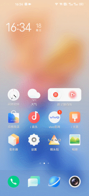 先说最简单的平行世界,点击可以在OriginOS新系统和传统系统间切换,两套系统共享一套数据,切换之后之前的图标位置样式也都和之前一样,这样不熟悉新系统的就可以使用更加习惯的传统系统,而且传统桌面也支持前面介绍的各种组件。