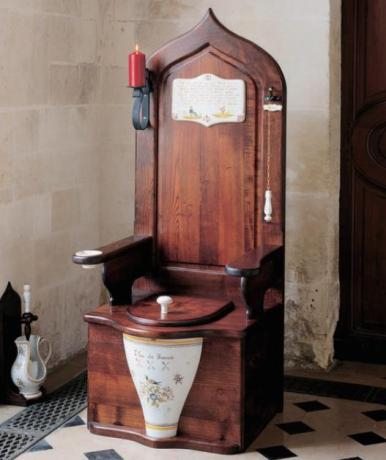清代时的皇家便盆有的类似木头抽屉,上面有一个掏了洞的盖子;也有的是锡制的椭圆形便盆,装有一层可以抽拉的锡板,上面再加一个木盖。使用便盆时为了更加舒服,还会加个凳子。
