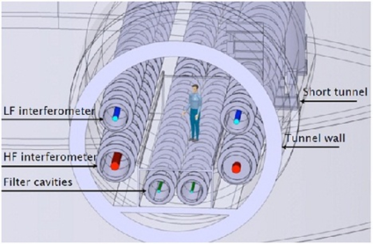爱因斯坦望远镜最终将建在何处、展开对引力波的搜寻,目前尚不清楚。但可以肯定的是,它一定会被建在地下。一方面,这是因为在欧洲很难找到一处能容得下一座边长10公里的三角形设施的地区。而另一方面,这是因为在地下深处,人类生活区、工业和交通的震动干扰也会小很多。根据地质学与社会经济学研究,规划者们目前比较倾向于撒丁岛、或者前面提到的荷兰、比利时与德国边境交界处。
