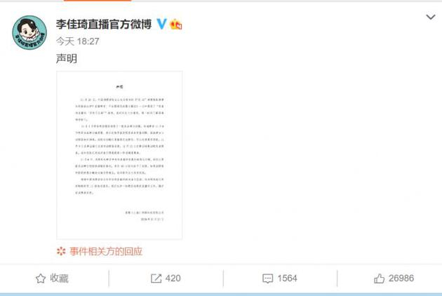 李佳琦回应:会负责到底