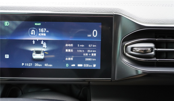实测开始时,室外温度只有14度左右,车内打开自动空调,温度调整至23℃,驾驶模式为节能,车内乘坐有三个成年人,总重量约超过了500斤,比一家三口出行稍微重一些。