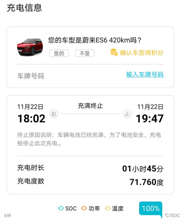 而这主要原因与未开启NIO辅助驾驶、气温下降,路面湿滑等环境因素有关。按照往常的测试经验,这样的路况正常实际/表显消耗应在70%左右。