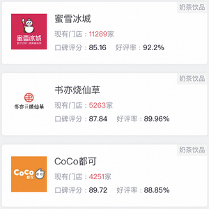 第三梯队:10元以下的人均价位,蜜雪冰城、益禾堂、甜啦啦为代表。