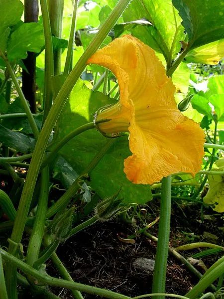 侧面也可以看出,南瓜雌雄花的不同。图片:Mad.madrasi / wikimedia