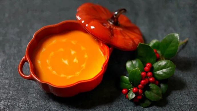 看起来十分喜庆的南瓜浓汤。图片:新星芯 / 豆果美食