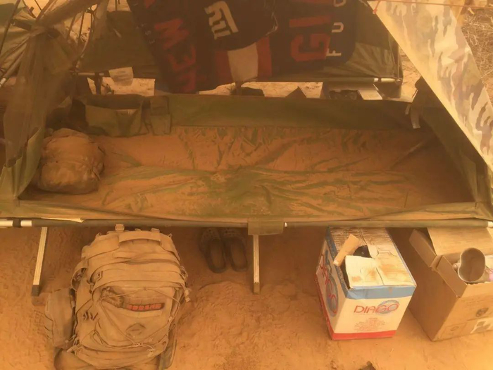 其实睡在车底也是个不错的选择。毕竟,即使睡在帐篷里,风沙一来,也可能会像下面一样