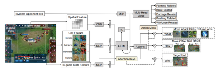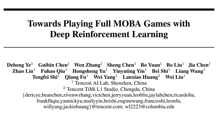 在腾讯 AI Lab 及腾讯天美工作室发表的论文《Towards Playing Full MOBA Games with Deep Reinforcement Learning》中,研究人员们提出了 MOBA AI 学习范式,支持使用深度强化学习来玩完整的 MOBA 游戏。
