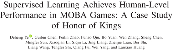 腾讯 AI Lab 在王者荣耀上的研究可谓成果丰厚,除了这篇 NeurIPS 2020 论文之外,腾讯 AI Lab 还有一篇监督学习方面的研究被 IEEE 期刊 TNNLS 收录《Supervised Learning Achieves Human-Level Performance in MOBA Games: A Case Study of Honor of Kings》:https://arxiv.org/abs/2011.12582