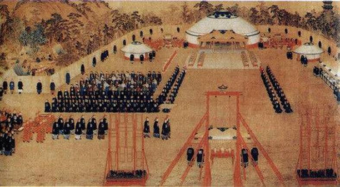 而东方的大型宴会服装是固定的。但是,在初一早上,例如春节宴会,所有人要先站在午门的广场上,最后只有一些贵族大臣的少数人才可以在宴席上。