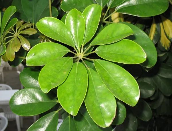 顾名思义,鹅掌藤是有“掌”的,它椭圆形的小叶片在叶柄上围绕成一圈,排列成了手指的形状,在植物学上称之为掌状复叶。那么有人就要问了,这掌状复叶的植物又不是只有你一个,怎么偏偏就你叫了鹅掌?没办法,谁让人家常见呢,而且好巧不巧,最容易见到鹅掌藤的地方,还是特别喜欢吃鹅掌的广东。