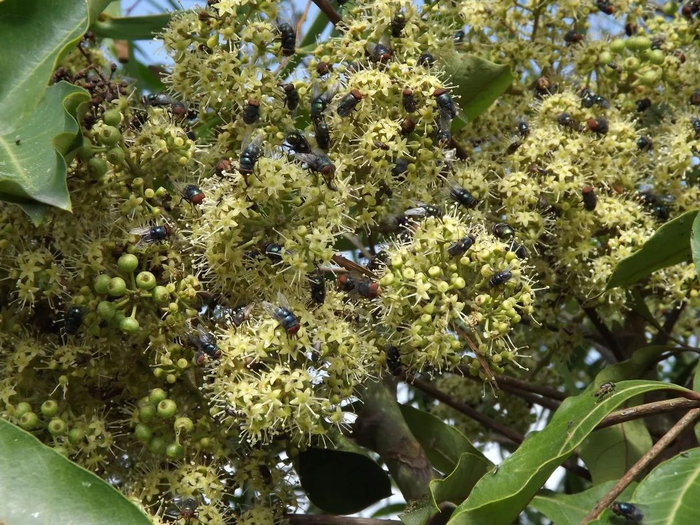 鹅掌柴的花非常招蜜蜂,但也非常招苍蝇。图片:含笑