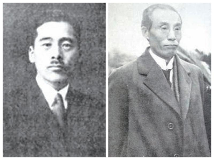 鹅掌藤模式标本的采集者佐佐木舜一(左)和鹅掌藤的发表者早田文藏(右)。