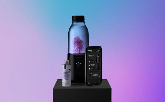 不仅于此,它的瓶底还有3个风味瓶,可调配90种不同口味的饮料,还能用手机调整风味浓度,并跟踪身体水分吸收和消耗状况……