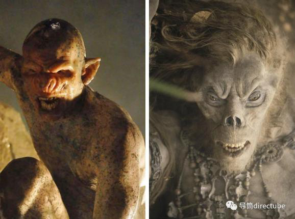 左图为尼尔·马歇尔《黑暗侵袭》 The Descent (2005) 中的穴居怪物,右图为西蒙·威尔斯《时间机器》 The Time Machine (2002) 中的莫洛克人Morlocks