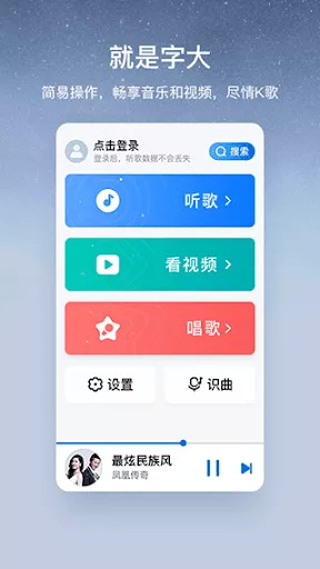 很多音乐类产品也已经做出尝试,推出了很多对中老年人友好的功能。比如酷狗音乐就推出了更容易看清屏幕内容、操作逻辑更简单的"大字版"。该产品上线5个月,日活就突破了100万,中老年用户占比超过75%。