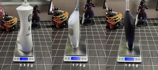 满水箱状态下:洁碧GS8-1 532g,飞利浦HX8340 174g,Oclean W1 185g。