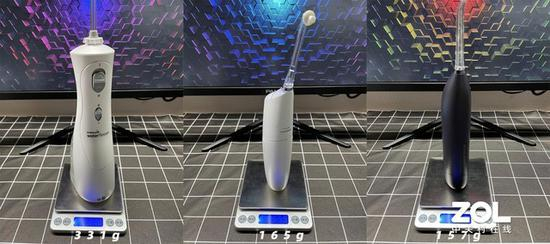空水箱状态下:洁碧GS8-1 331g,飞利浦HX8340 165g,Oclean W1 157g。
