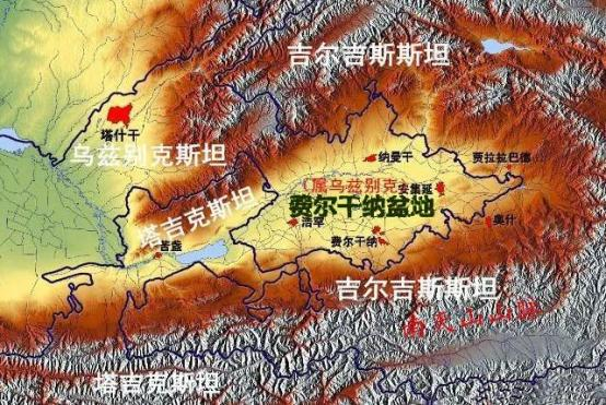 乌兹别克、吉尔吉斯、塔吉克三国各占有一部分费尔干纳盆地。不过,由于几百年的混居造成各族之间的边界很难完全厘清。在强有力的苏联政府干预下,几个共和国的划界还算顺利。也就是说,作为国家(加盟共和国也算)的历史不足一百年,是在苏联时期才形成的。