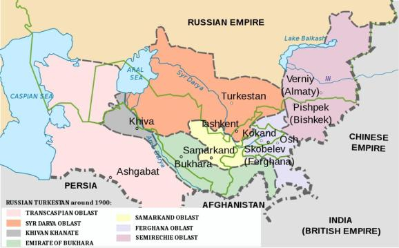 征服中亚后,俄国采用类似于殖民地形式的总督区管理各个民族。1917年十月革命后,苏联继承了俄国对中亚的统治,并进行了大规模的民族划分,很多语言、习俗相近的民族都被并入几个大的民族。