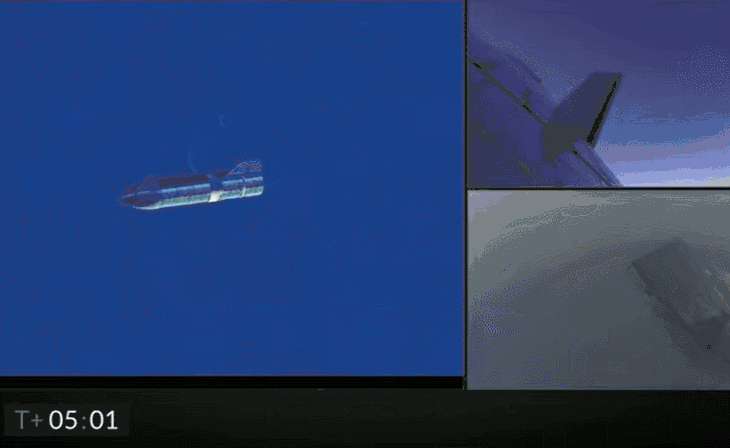 随后发动机逐一停止工作,SN8开始慢慢倾斜,直至与地表平行。